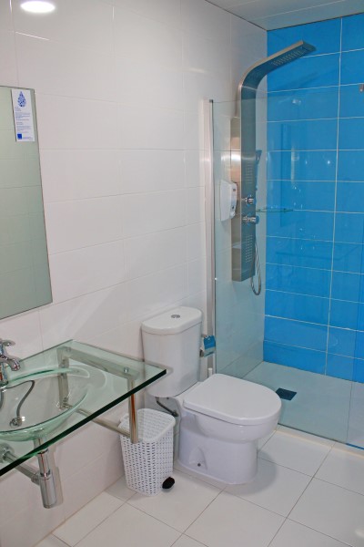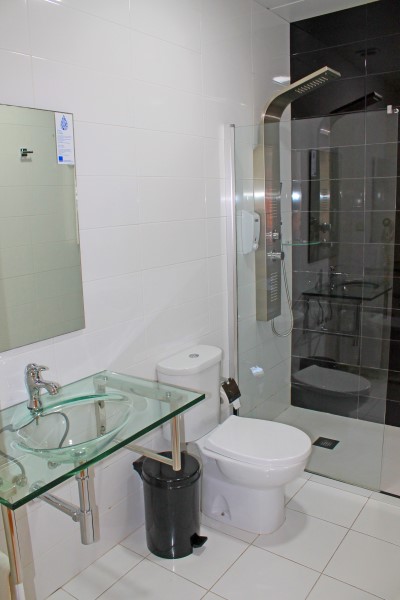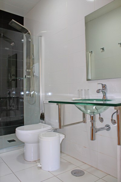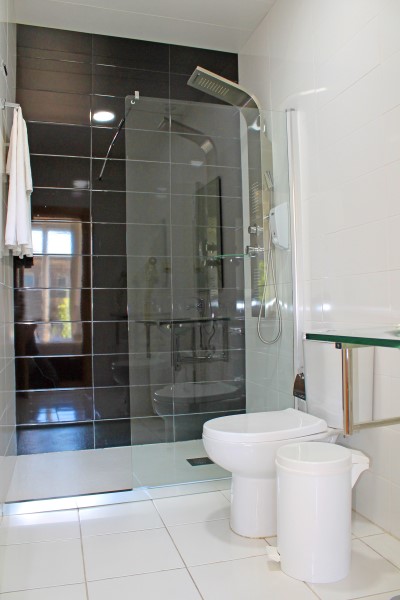 Private bathroom with shower and hairdryer