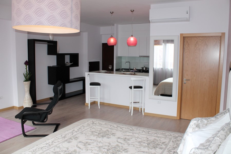 Monolocale con letto matrimoniale o letti gemelli (deve specificare la tipologia di letto desiderata) e divano letto. Ideale per 2, 3 o 4 persone. Dotate: